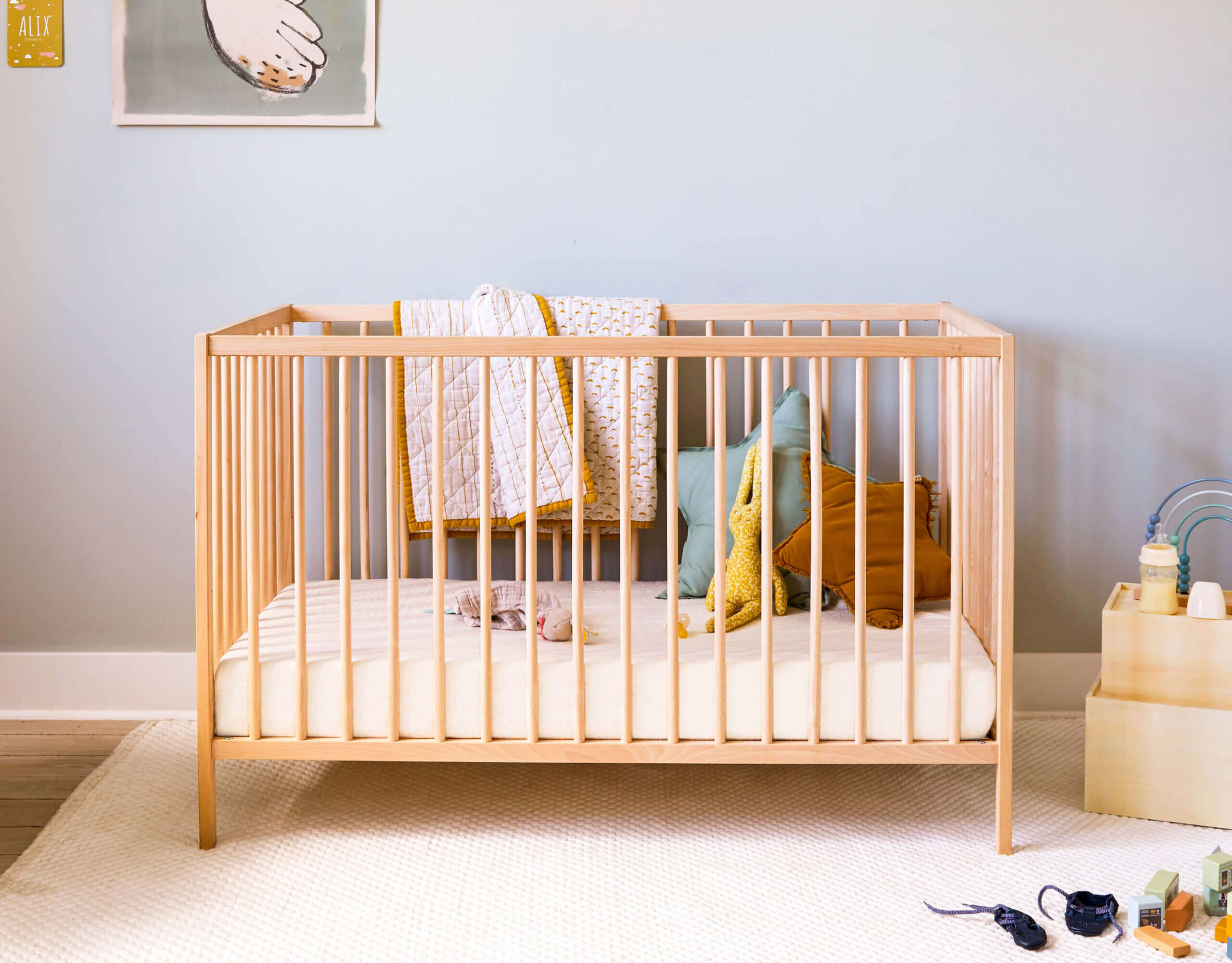 Pour que votre enfant mérite des nuits de qualité, nous avons développé une gamme de produits idéale pour compléter la chambre de votre bébé. Nous proposons bien-sûr l’élément principal du couchage, un matelas en latex naturel au confort idéal. Pour prendre soin du matelas, nous proposons un protège-matelas en coton bio ainsi qu’un drap housse adapté au confort de votre bébé.