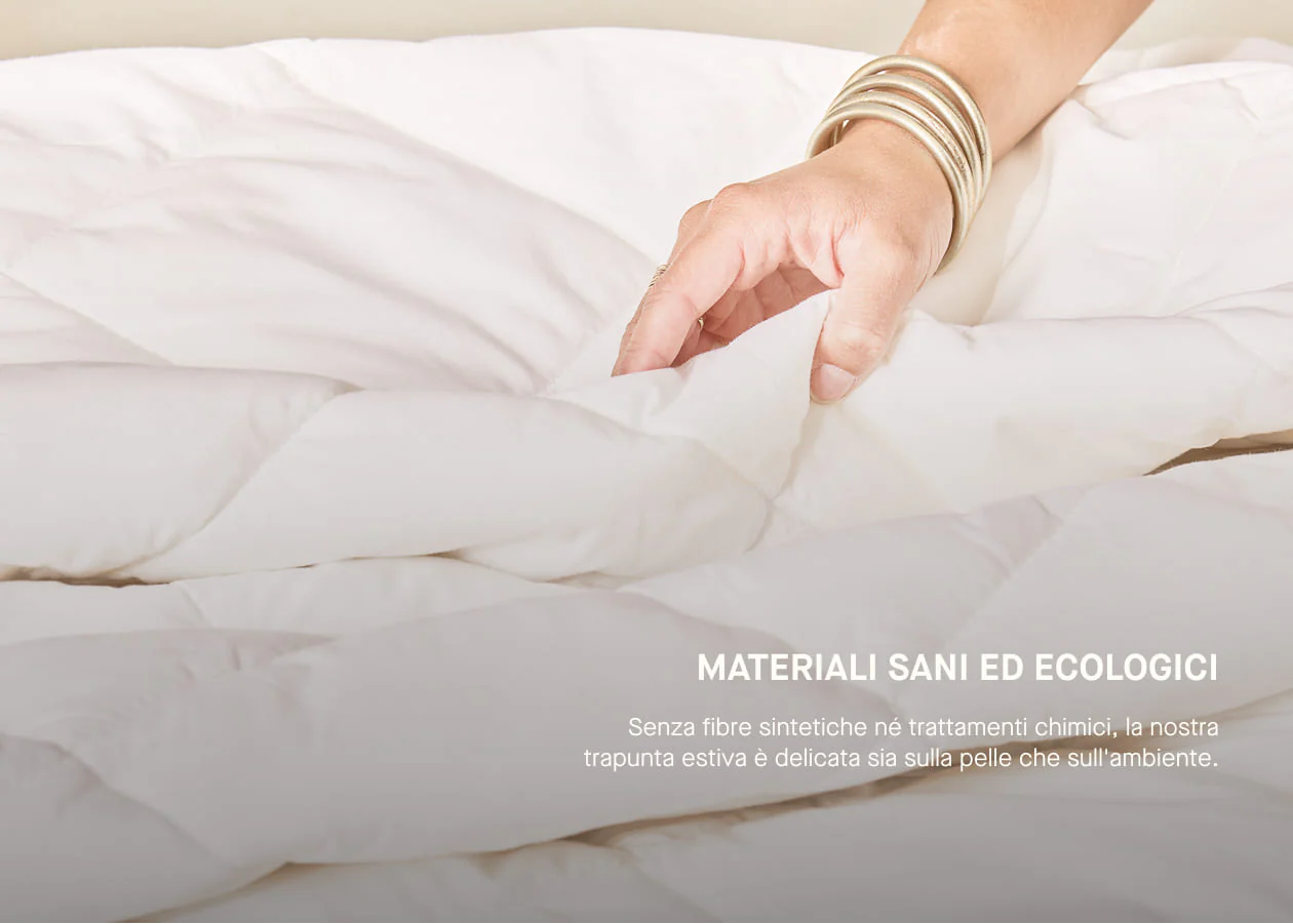 Grazie al suo riempimento in 100% Tencel®, una fibra derivata dalla polpa di legno e alla sua copertura in cotone biologico, è traspirante e leggera.